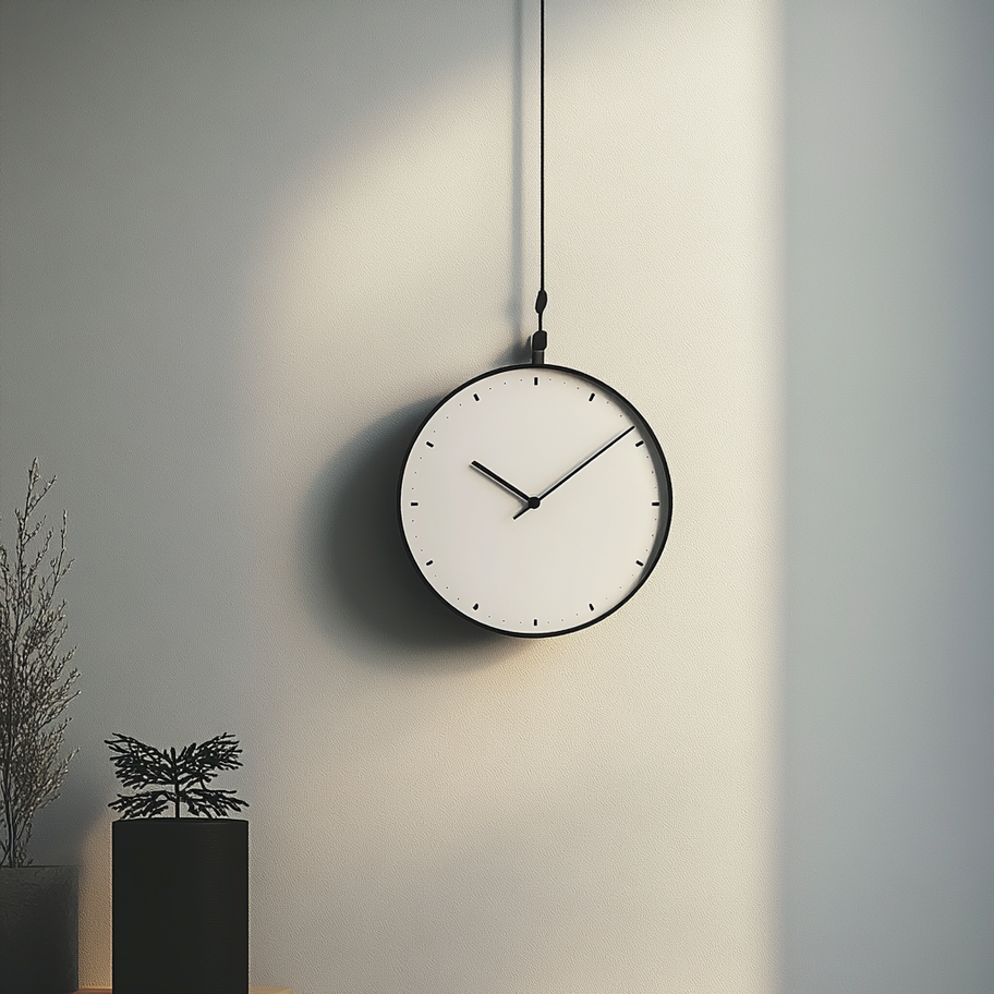 「ミニマルデザイン掛け時計」は、モダンな住空間やオフィスにぴったりのスタイリッシュな壁掛け時計です。無駄を省いた洗練されたデザインで、シンプルながらも上品な文字盤が特徴。